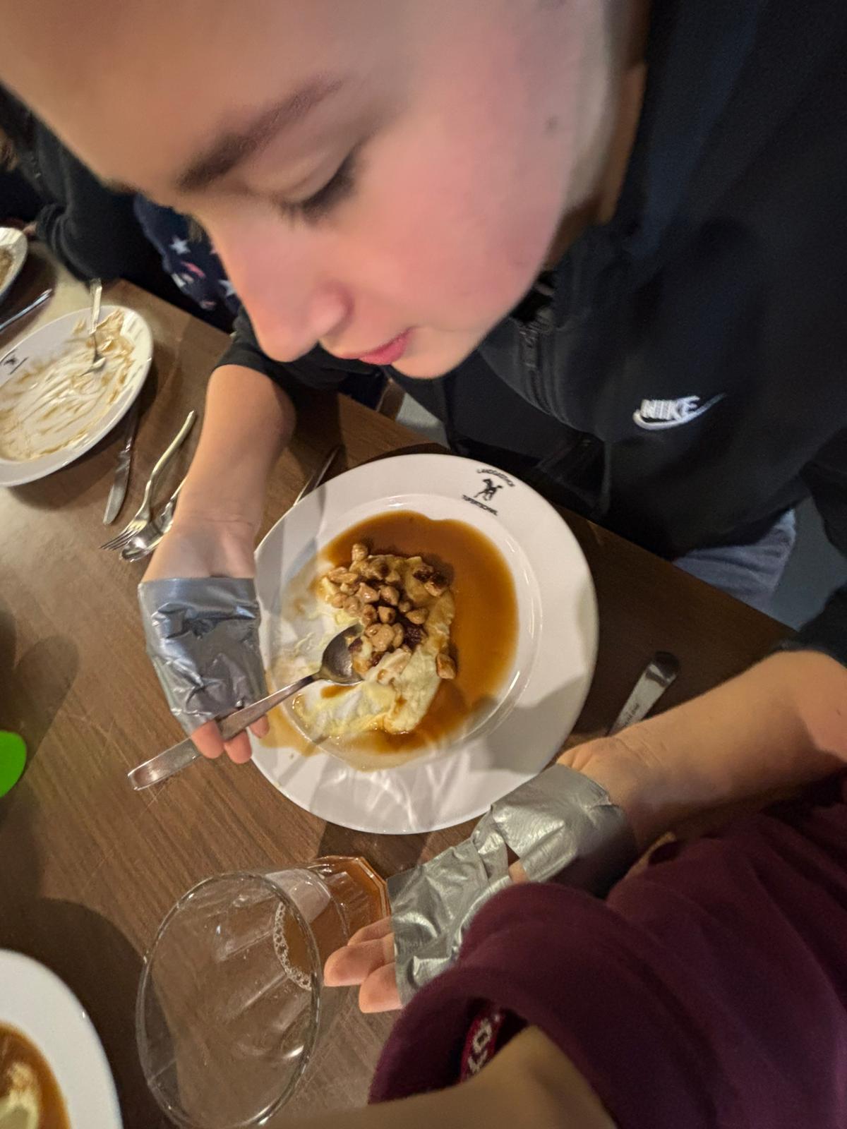 Wir haben am zweiten Tag hoch motiviert gestartet, obwohl das Wetter uns im Stich gelassen hat. Nach einer strengen ersten Nacht, in der alles neu war, haben wir den Tag mit einem Frühstück mit Zopf begonnen. Auf den Boarding Pässen haben die Teilnehmenden ihren ersten Stempel abgeholt und sind gleichzeitig in Ägypten angekommen. Dort wurden sie von der Ägyptologin Sia empfangen, die ihre Hilfe beim Erforschen einer Pyramide benötigt hat.