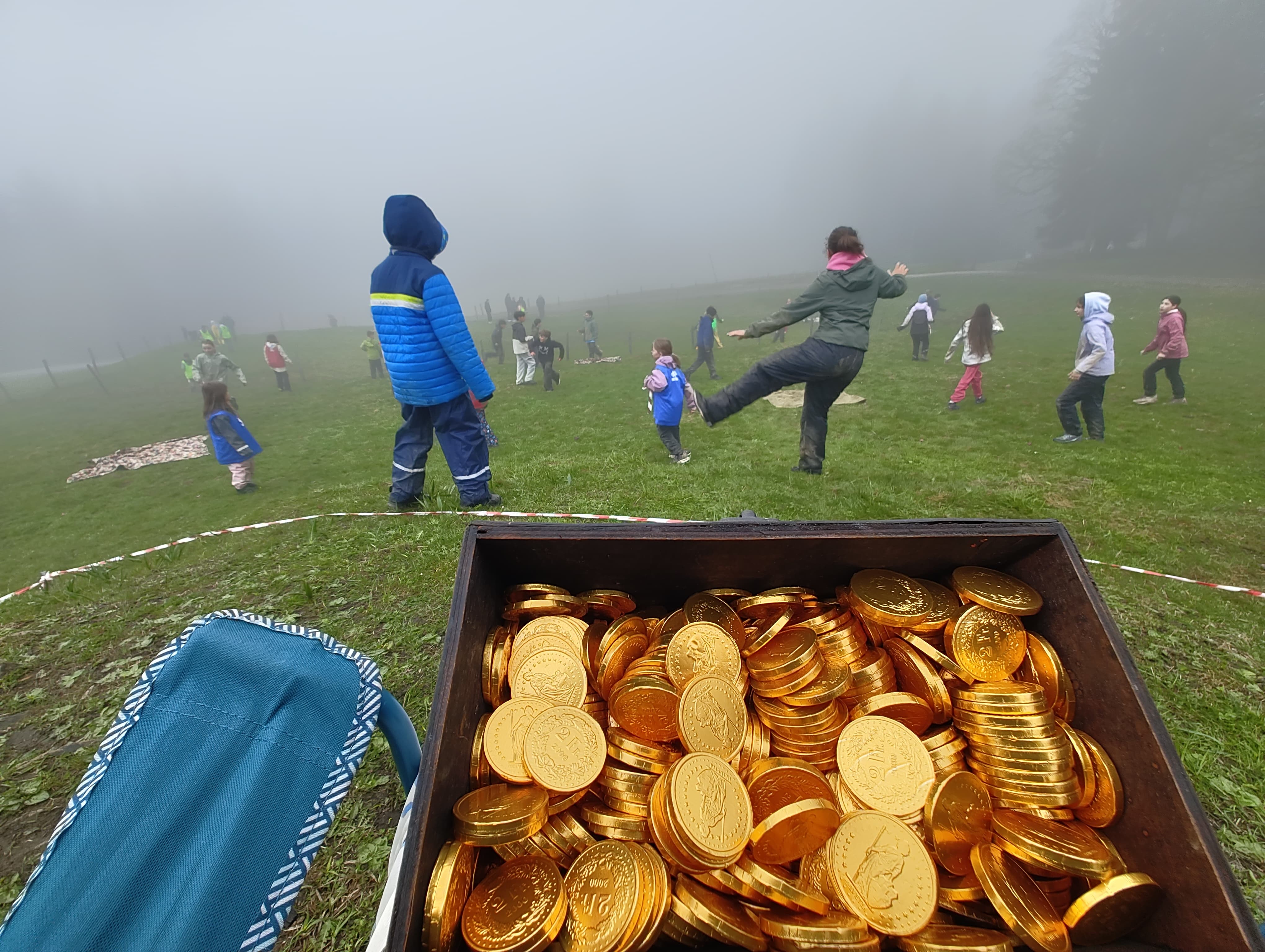 Nach dem gestrigen Überfall auf das Casino waren wir heute den ganzen Tag mit den Piraten beschäftigt. Begonnen haben wir mit der körperlichen Vorbereitung. Die Kinder haben in drei Gruppen einen Angriff der Piraten simuliert, in dem immer eine Gruppe den Hügel mit der Schatztruhe angriffen. Die anderen zwei Gruppen haben die Schatztruhe dann verteidigt. Es wurden jeweils drei Varianten gespielt, in denen die Teilnehmer immer heftiger mit einander kämpften. Doch leider hat sich Blaubär verschätzt und die Piraten waren gar nicht unbedingt hinter dem Schatz her, sondern klauten dann einfach Schlafsäcke, Plüschtiere, Finken und Koffer. Oh weh!
